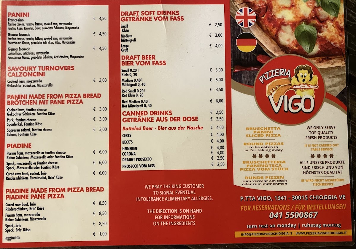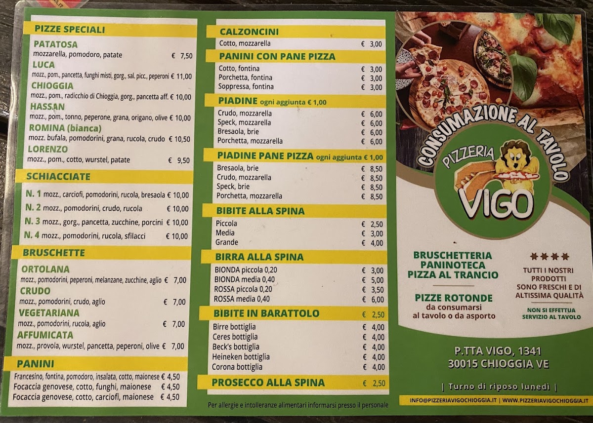 Welcome to Pizzeria Vigo, a delightful culinary gem nestled in the picturesque Piazzetta Vigo of Chioggia, Italy. Known for its exceptional self-service dining experience, it offers a diverse menu featuring classic pizzas, savory calzones, and delectable paninis, all made with top-quality ingredients.